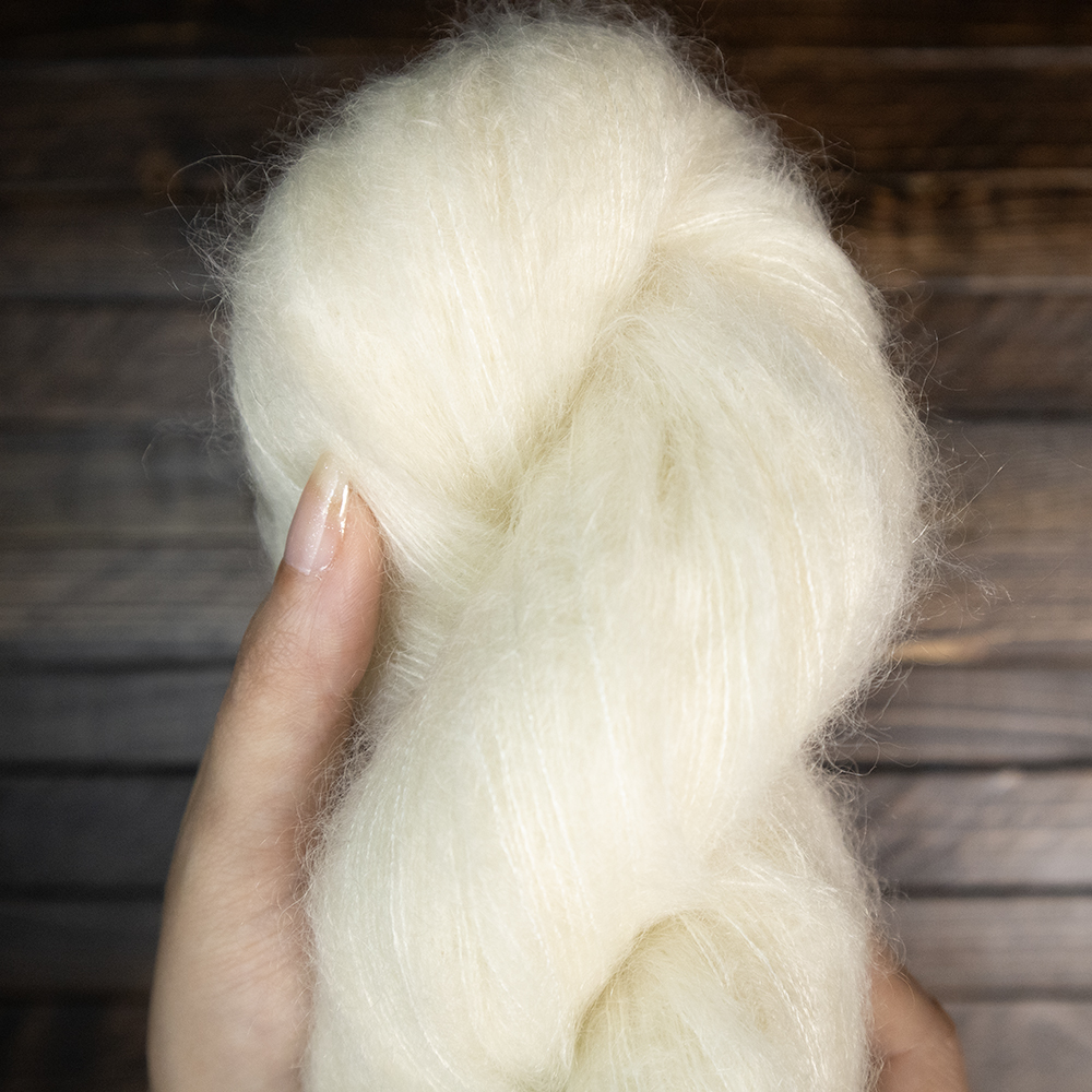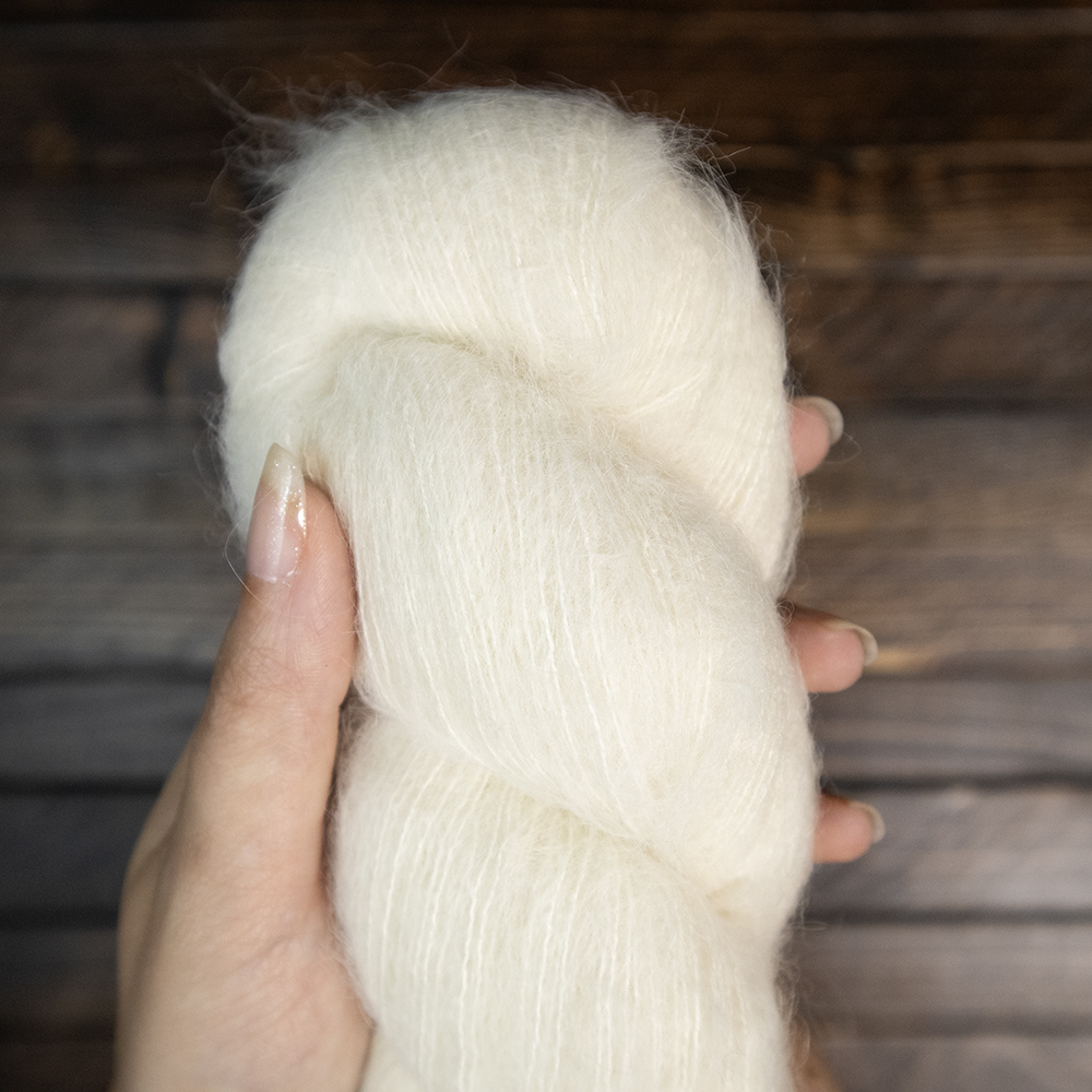 Light as air and irresistibly soft, this yarn drifts across your needles with a luminous glow. Spun from the finest super kid mohair and anchored by lustrous silk, this laceweight yarn creates a gentle halo that transforms every stitch into a dreamlike texture. Whether used on its own for featherlight fabrics or held alongside other yarns for added depth and sheen, Superkid Mohair Lace adds an elegant, misty charm to any project.