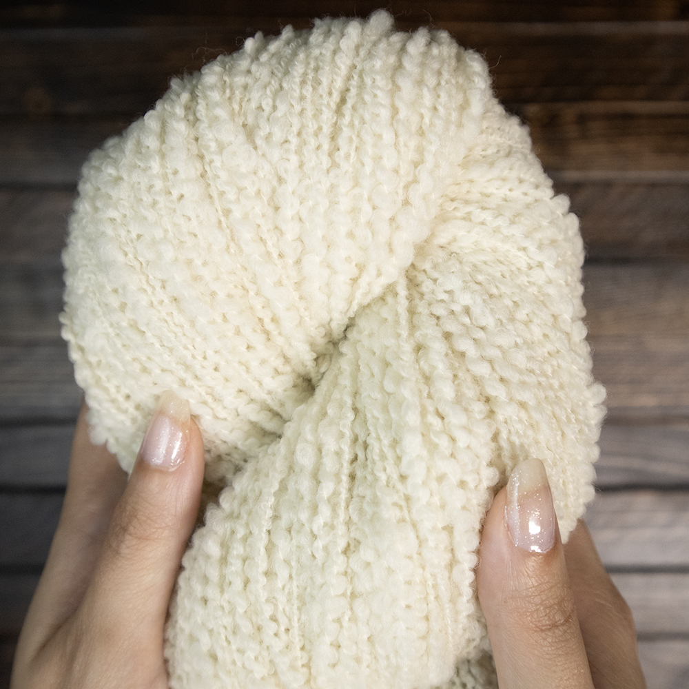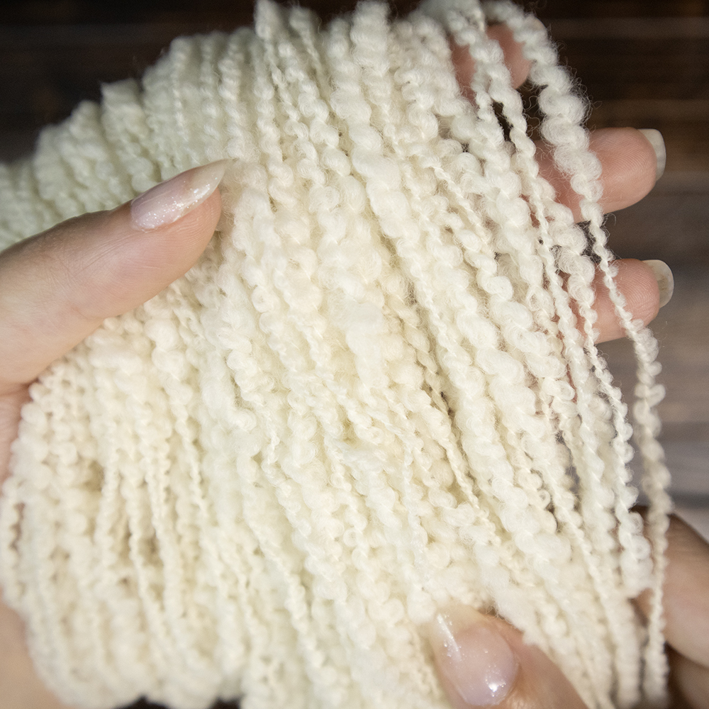 Textural, playful, and full of personality, NSW Thick & Thin Merino Crimp DK brings a whimsical twist to natural fiber knitting. Spun with undulating waves of lofty merino crimped around a finer core, this single-ply yarn creates a fabric that’s light, lofty, and full of movement. Its subtle thick-and-thin texture adds visual interest and a handcrafted charm to garments and accessories alike. Whether used for cozy sweaters or statement scarves, this yarn transforms simple stitches into something delightfully dynamic—all in pure, untreated merino wool.