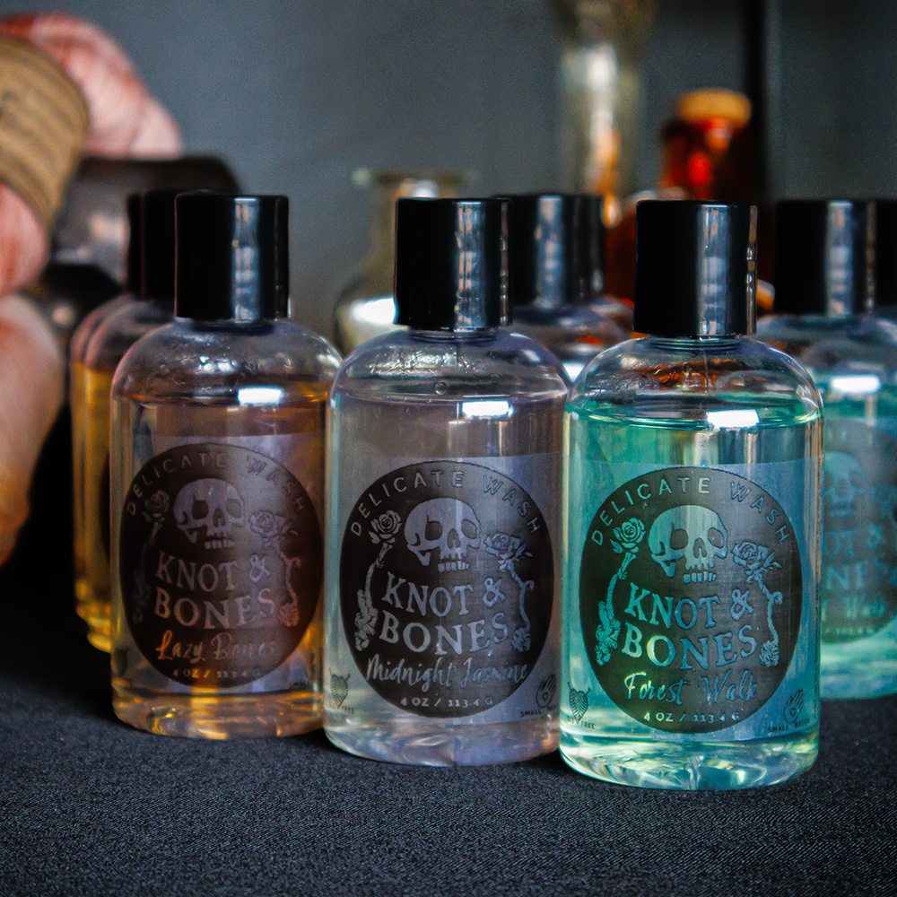 At Knot & Bones, every skein of yarn goes through a careful, hands-on dyeing process in our Jacksonville studio. Once dyed, each skein is gently rinsed and soaked in cool water with a nourishing wool wash, ensuring the colors are set and the yarn is soft to the touch. Industrial dyeing uses gross amounts of water to ensure that their mass produced yarns never bleed. Being a small indie dyer, I do my best to rinse away as much of the excess dye as I can while trying to be conservative with the amount of water I am using. And sometimes due to the amount of pigment we use during our dyeing process, there will be a small amount of dye that is released from the fiber while you wash your projects at home. This is something to be aware of when choosing colors to use together in your projects(pinks, reds and yellows tend to be MAJOR bleeders). We then use a spin dryer to remove excess water, followed by air-drying—allowing each skeins fibers to fully bloom.